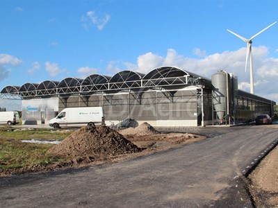 The barn is equipped with a 'BioBodem', a climate-controlled compost bedding. This system is a combination of a biofilter and a compost bedding. The heat generated by the composting of the soil leads to a dry and comfortable bedding. The soil also functions as a biofilter, the air which is sucked through the bedding, allows the nitrogen to bind in the soil.